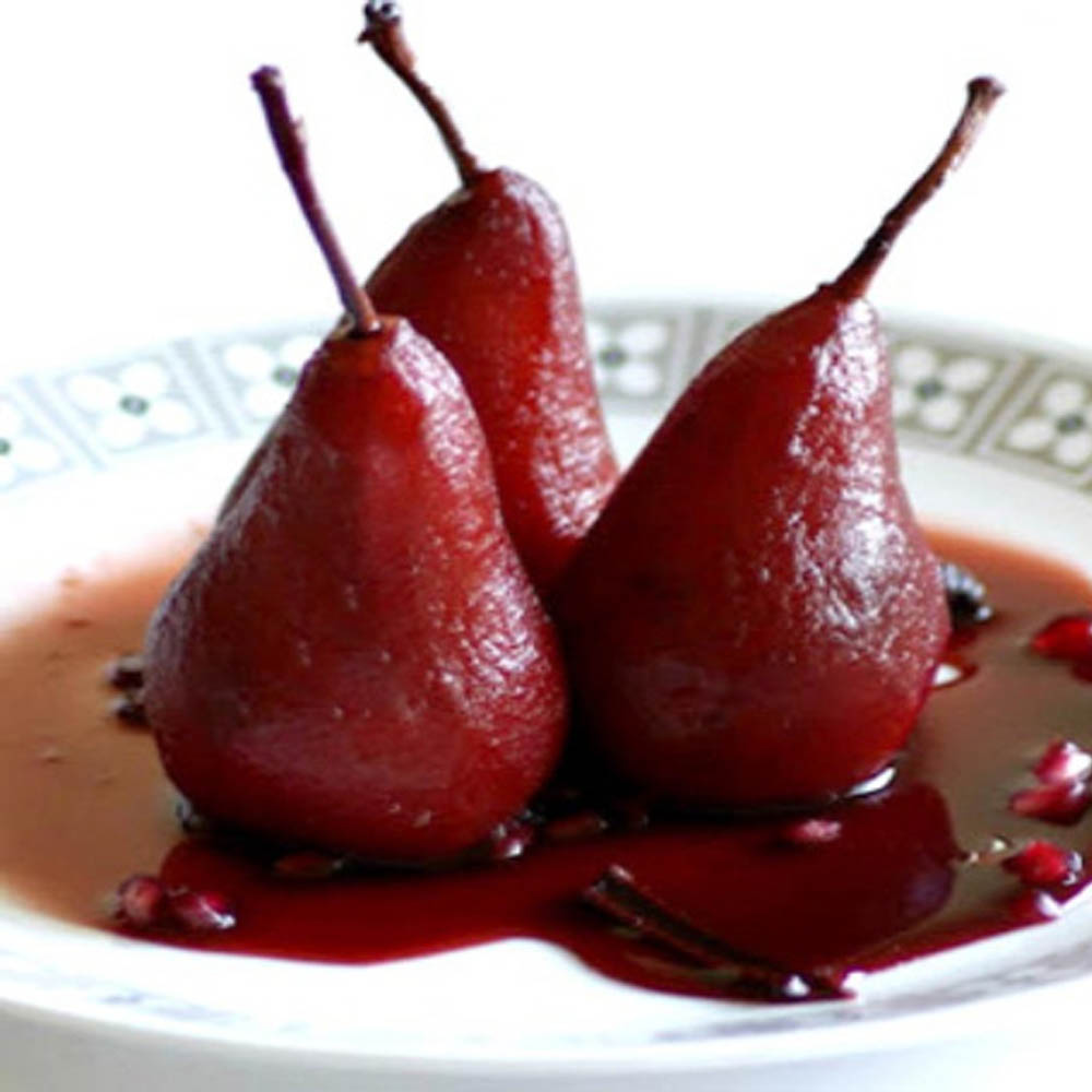 Poached pears in red wine